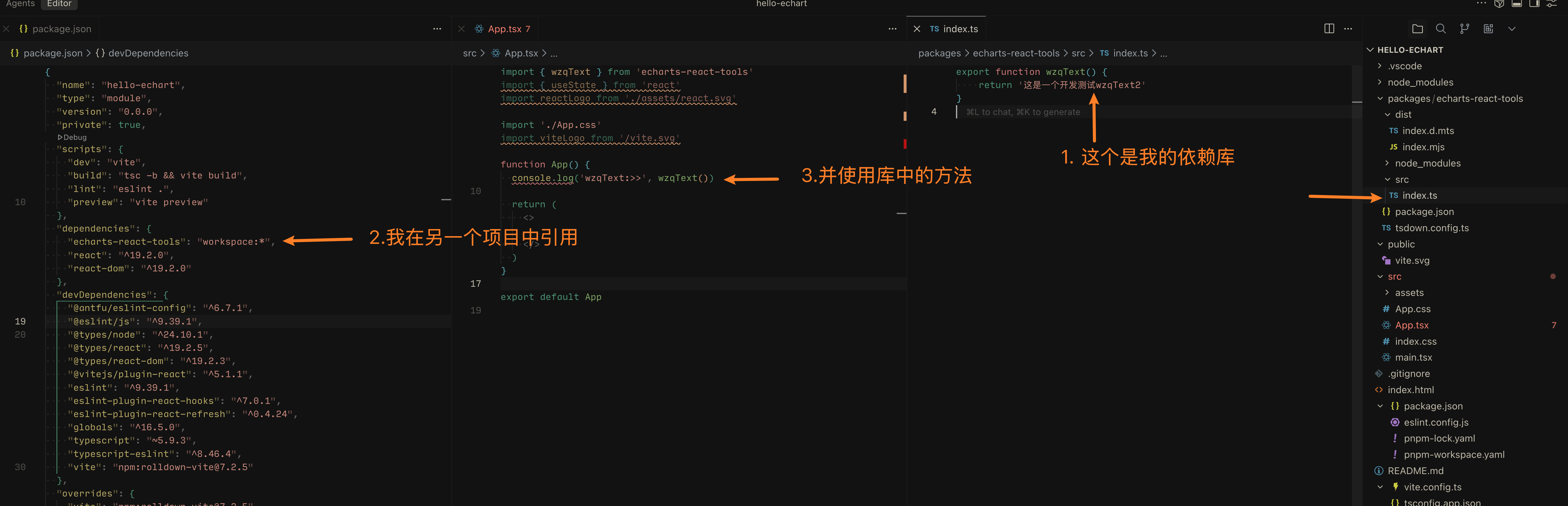 # 只在 echarts-react-tools 这个子包中安装依赖