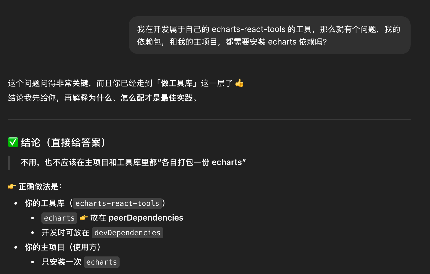 - [Q: 我的依赖包,和我的主项目,都需要安装 echarts 依赖吗?](#Q: 我的依赖包,和我的主项目,都需要安装 echarts 依赖吗?)