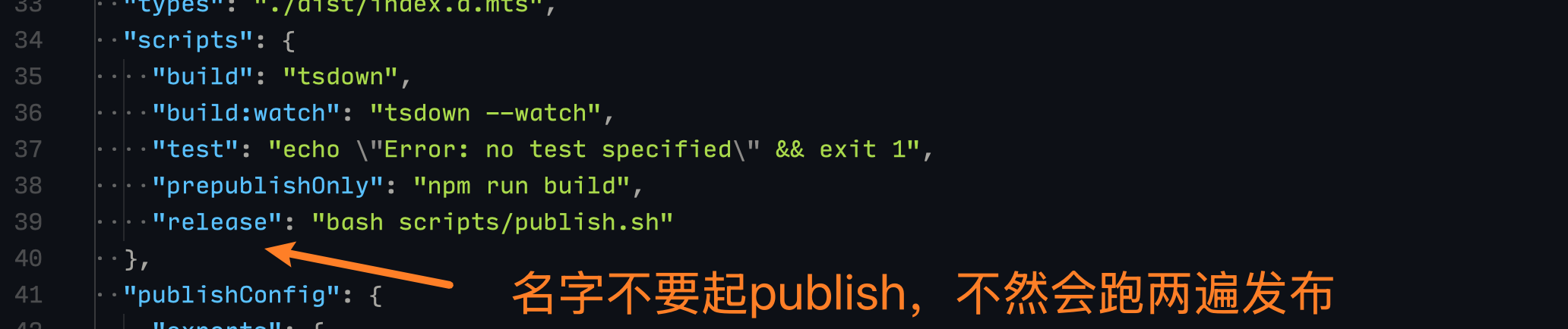 这个地方遇到了点问题,我每次跑发布的命令会走多次,这个是 npm 的递归问题,脚本的名字不要起 publish