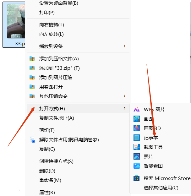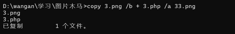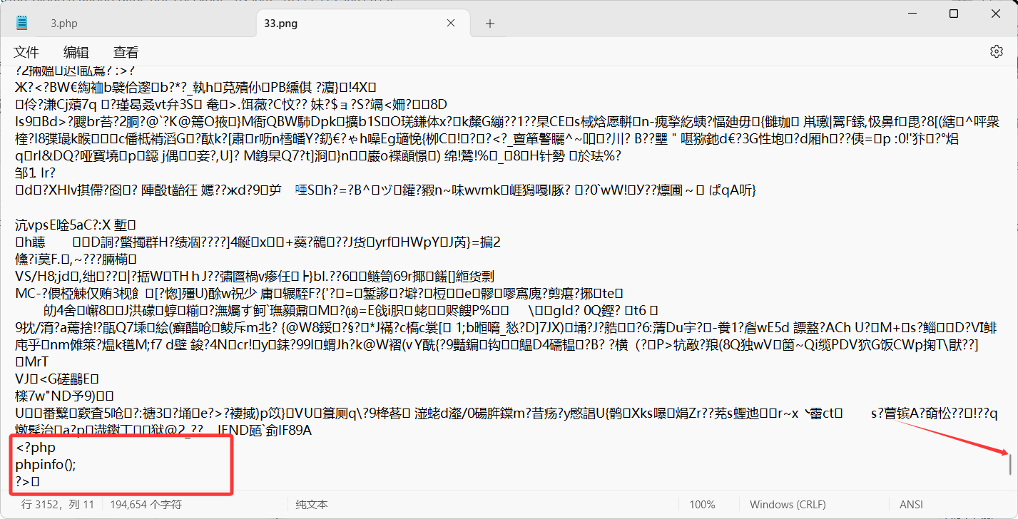 显示上面的图片的运行结果代码成功的制作了图片马,打开文件的目录,会看到生成了一张33.png图片,用记事本打开