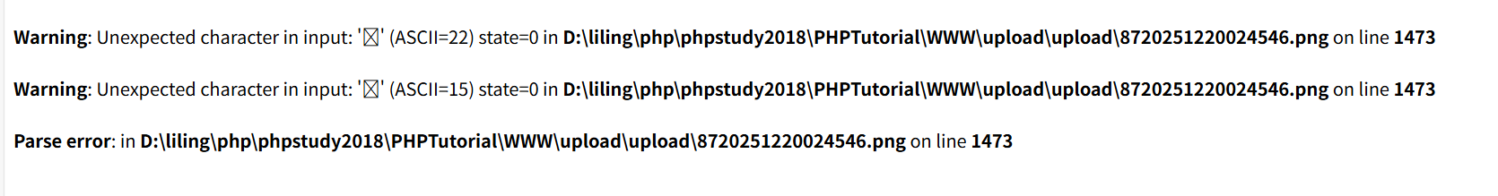 刚做14关的时候,一直出现错误,显示出现意外字符,但是我也检查了好几遍我的php文件没有问题啊,也没有多用的字符,重新创建一个文件,无论写phpinfo()还是写一句话木马,用copy生成的图片马都无法正常被解析。我也是按照步骤来的,但是就是一直出现错误