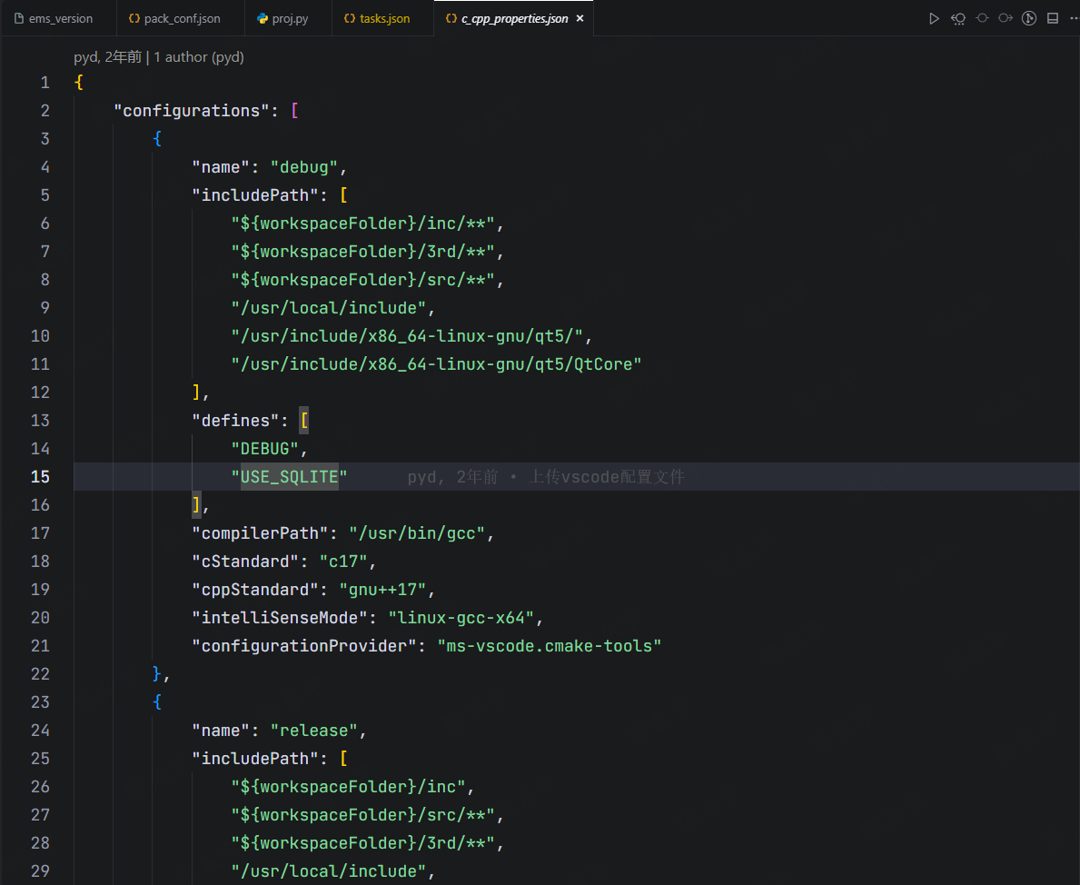 为了让VSCode正确识别编译器和编译选项,需要配置.vscode/c_cpp_properties.json文件: