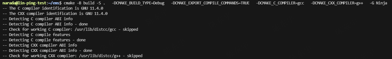 bashcmake -B build -S . -DCMAKE_BUILD_TYPE=Debug -DCMAKE_EXPORT_COMPILE_COMMANDS=TRUE -DCMAKE_C_COMPILER=gcc -DCMAKE_CXX_COMPILER=g++ -G Ninja