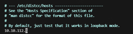 /etc/distcc/hosts文件,添加允许连接的客户端:bashsudo vim /etc/distcc/hosts -