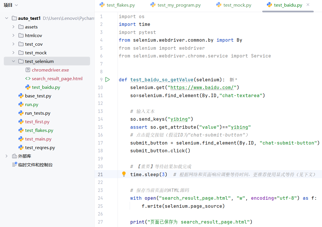 目的:使用pytest-selenium插件,在输入框输入查询信息后,保存查询结果到html文件