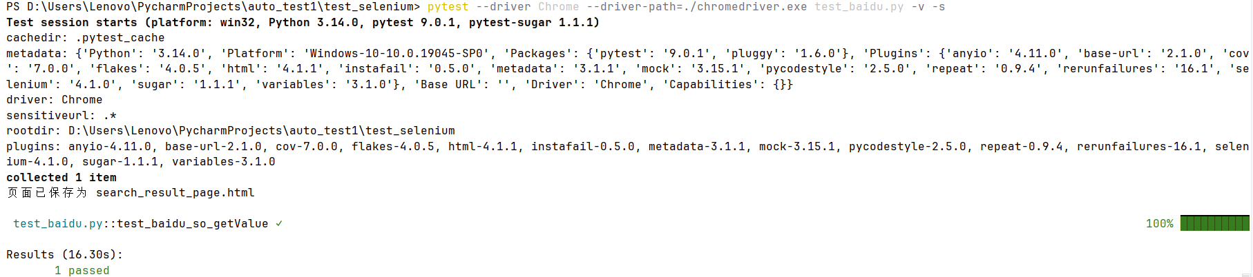 pytest --driver Chrome --driver-path=./chromedriver.exe test_baidu.py -v -s