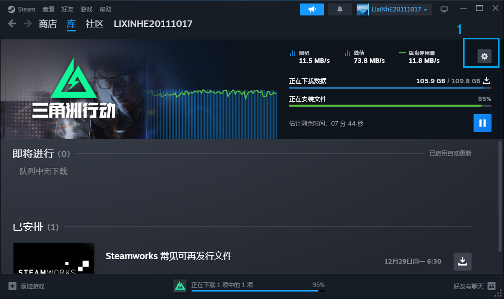 据我观察,Steam的下载习惯很特殊,不是刚刚下好内容就立刻存到储存里的,而是下载一会、安装一会(尤其对于较大的文件)