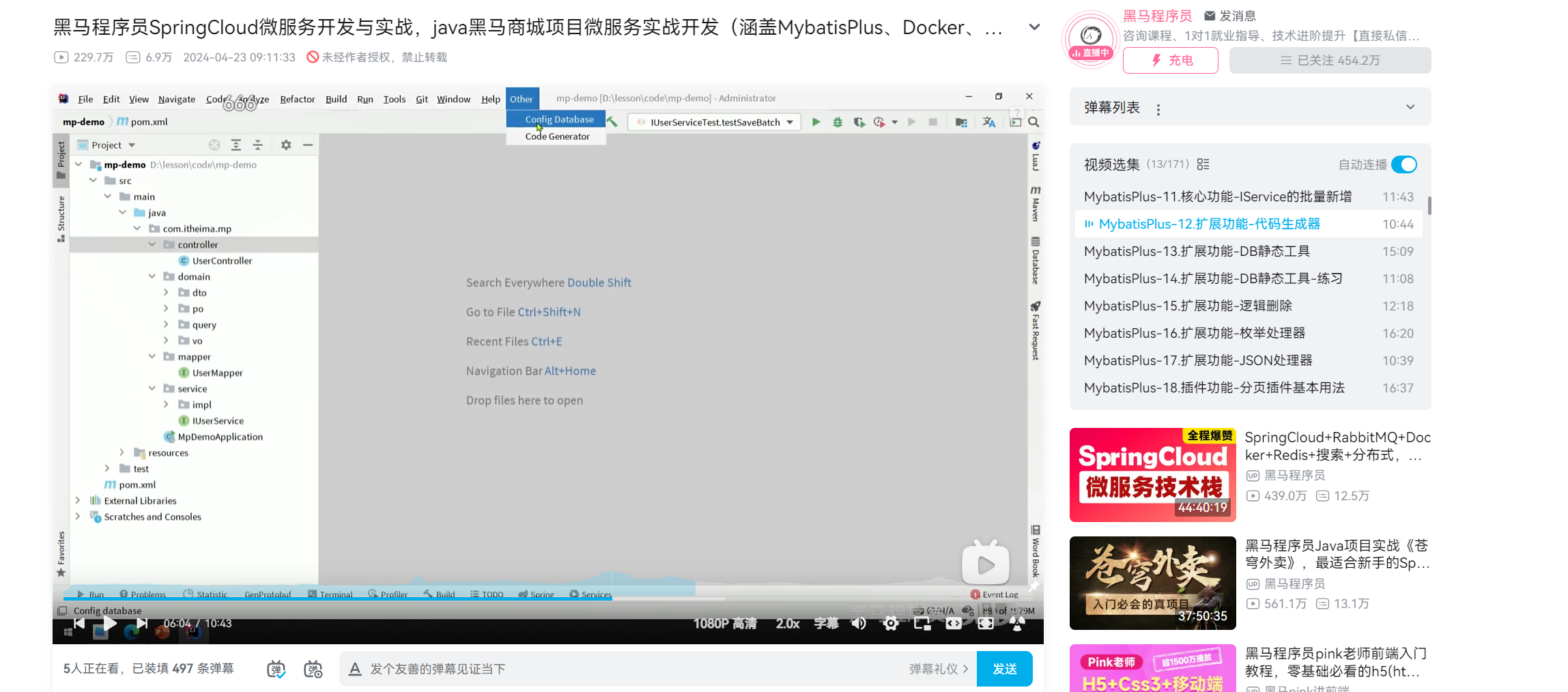 p13mybatisplus12扩展功能代码生成器 找不到config database这个按钮