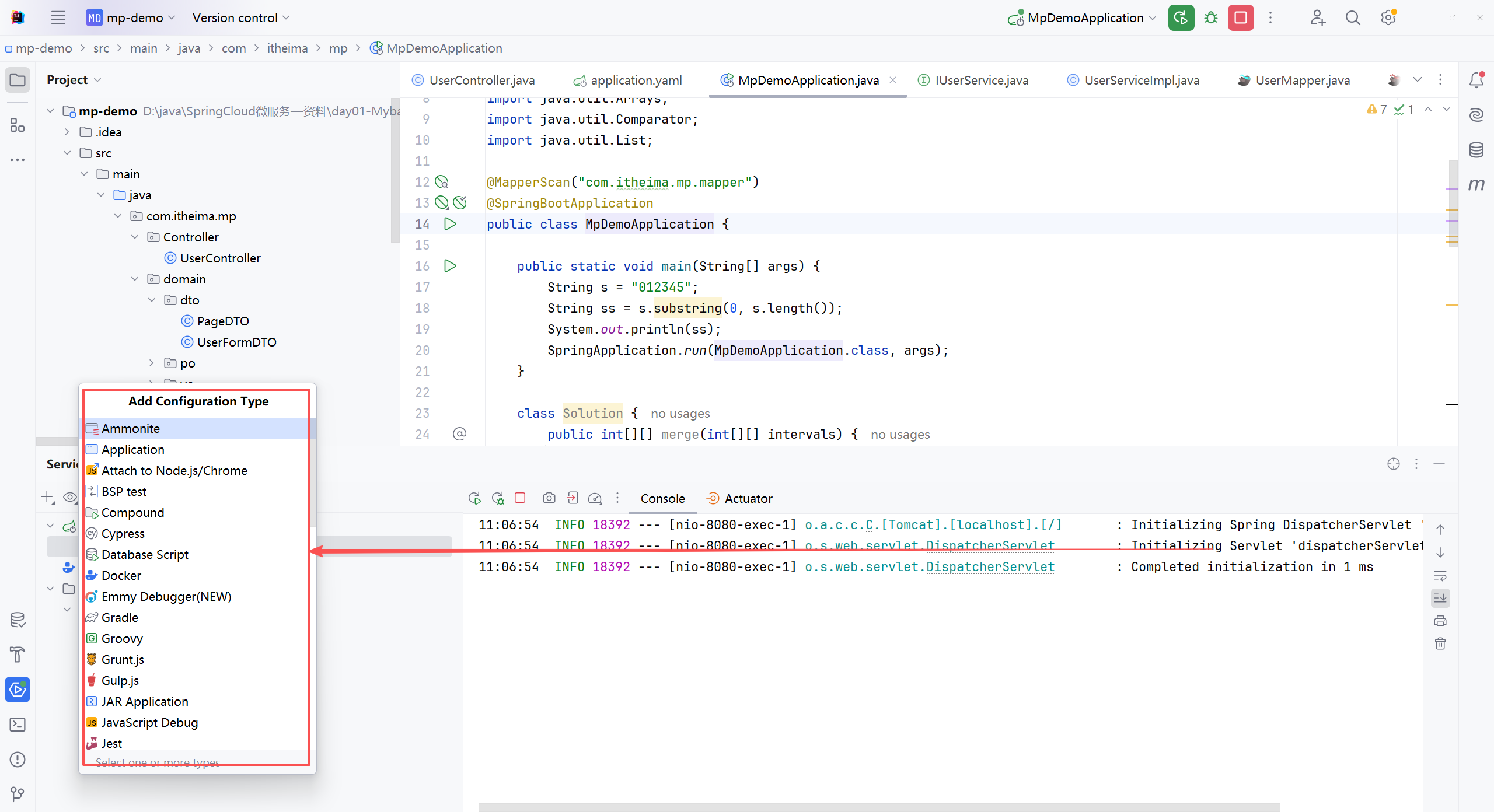 p10mybatisplus09p10mybatisplus09核心功能iservice 不知道如何在新版的idea中打开下面的service,找到"Add Configuration Type"