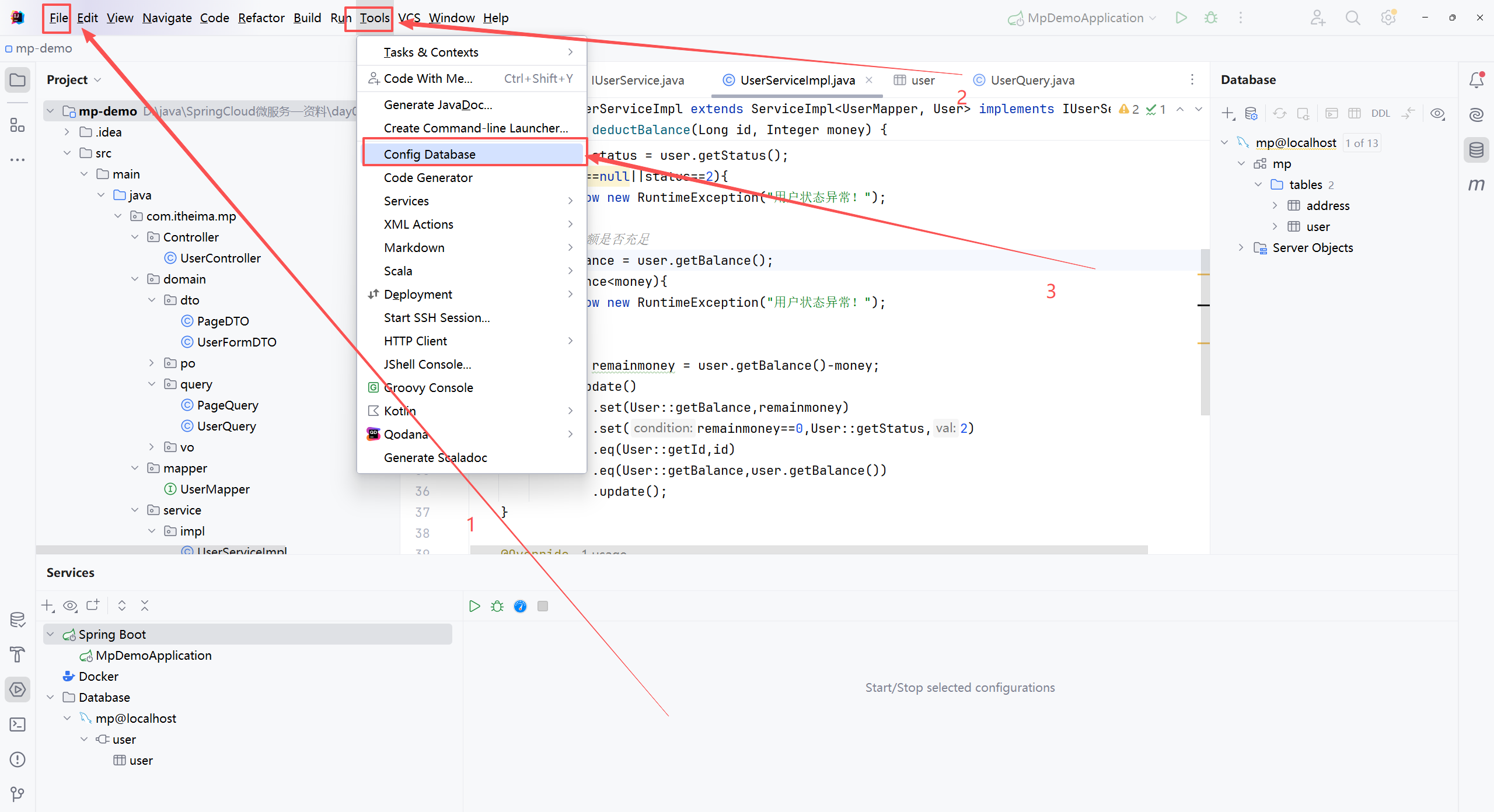 在黑马微服务的的这个位置,新版的idea没有这个按钮了,找不到config database这个按钮