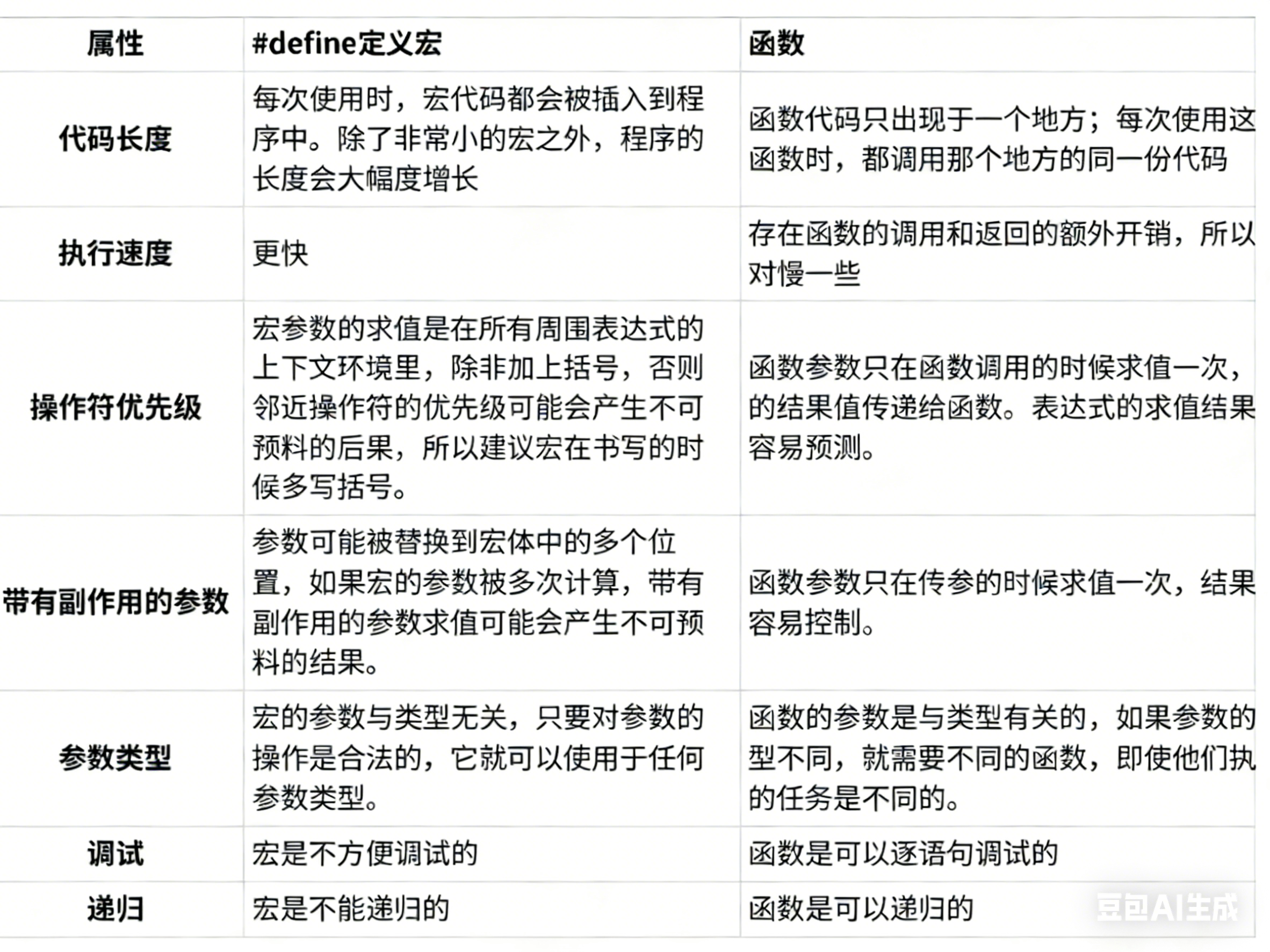 如果是函数的话,它的参数是不能有类型的,即传个int float 的参数,但是宏传过去的参数是可以这样的,因为宏本身没有类型的定义,这也是宏的一个优点