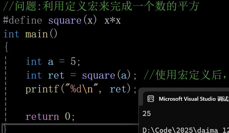 int ret = square(a); //使用宏定义后,这个代码等价于 int ret = x*x