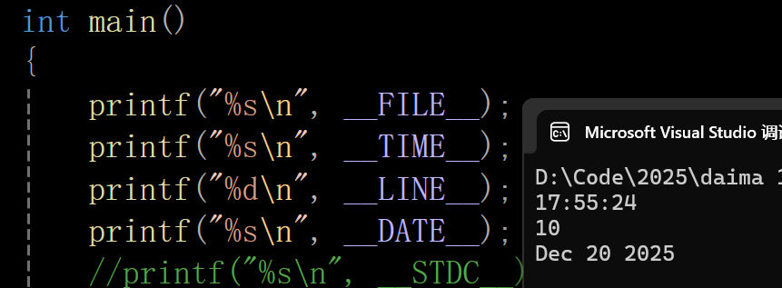 printf("%s\n", __STDC__); //如果编译器支持则返回值是1,否则会报错误,在VS2022是不支持的