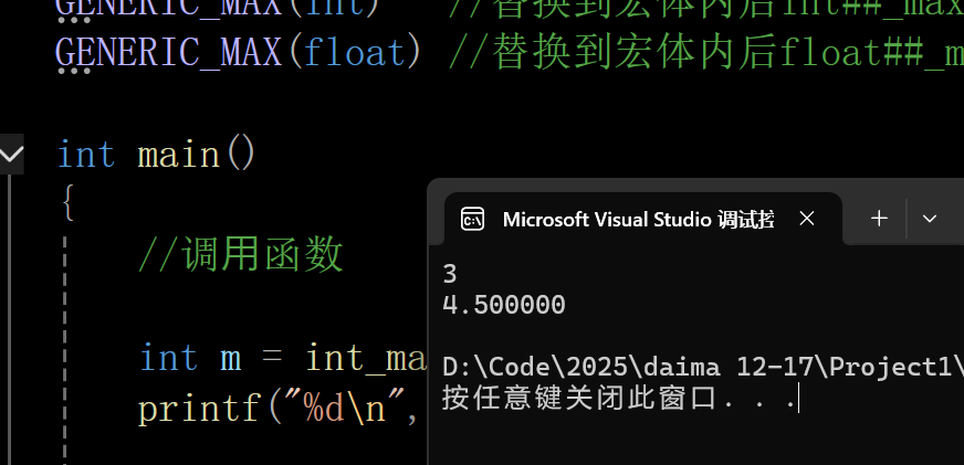 GENERIC_MAX(float) //替换到宏体内后float##_max⽣成了新的符号float_max做函数名