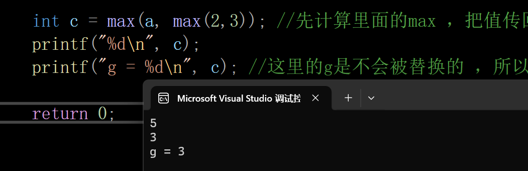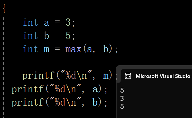 int m = int_max(2, 3);