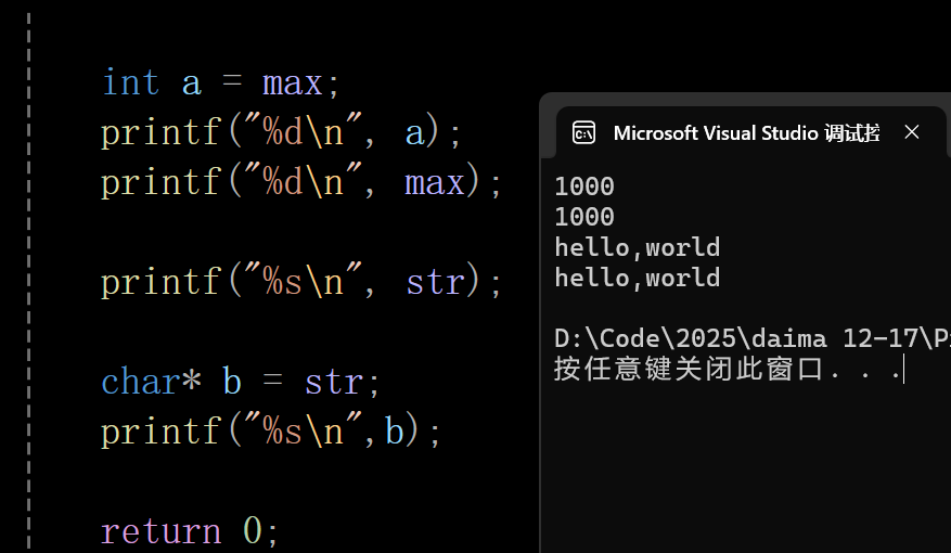 //printf("thr value of" " a " "is " "%d" "\n" , a); //利用宏定义之后,替换出来的式子