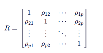第 i 行第 j 列的元素表示变量 Xi 与变量 Xj 之间的相关系数。