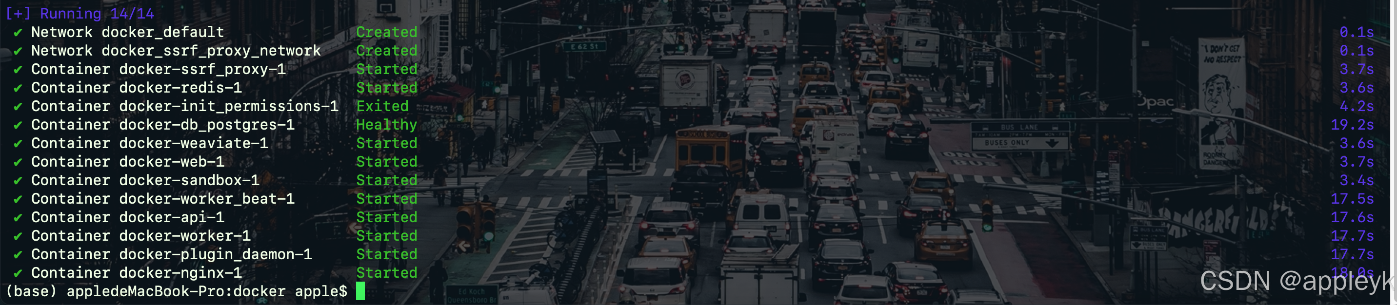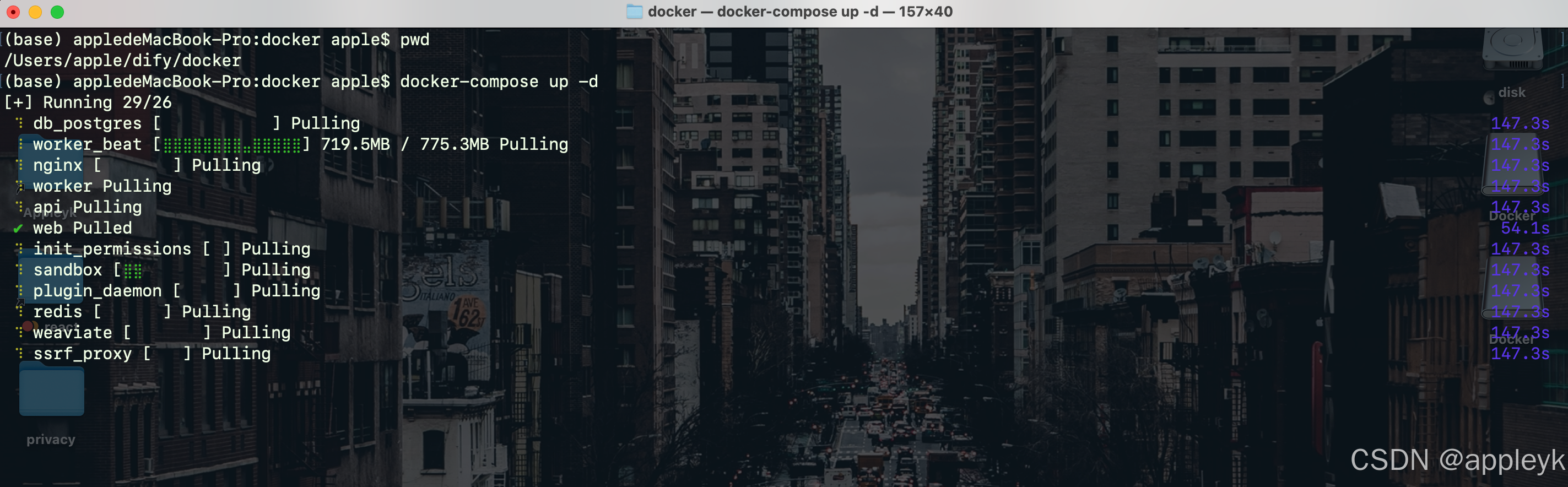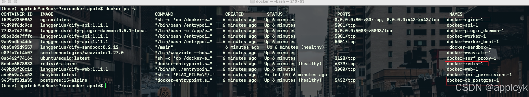 使用docker-compose 命令启动并运行容器,在~/dify/docker目录下执行如下命令: