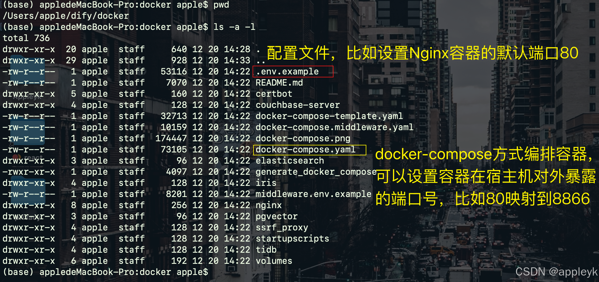 如果你的docker在没跑dify之前已经运行了一个nginx:80的容器了该怎么办?或者宿主机上已经映射(暴露)了一个80的端口了又该怎么办? 因为这些会导致dify的最后一个容器docker-nginx-1启动失败,会提示诸如:"80 already used..."