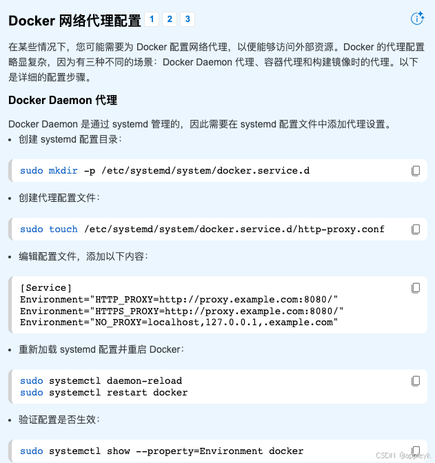 - 这里有个小tip:如果这里的镜像拉不下来一直提示 xxxx 连接超时的话(只要是国内,不管你是win、linux还是mac必中),有两种方式可以尝试,第一种就是上网搜一下docker的国内源,设置下看行不行(这个我已经试过了,效果很糟糕),第二种就是走proxy,比如本地或局域网的7890端口等(小黑cat,都知道的),操作见下图(由于我就是本地pull的,不用设置proxy,如果是独立的linux或者ubantu服务器的话,需要共享本地proxy的话,需要设置):