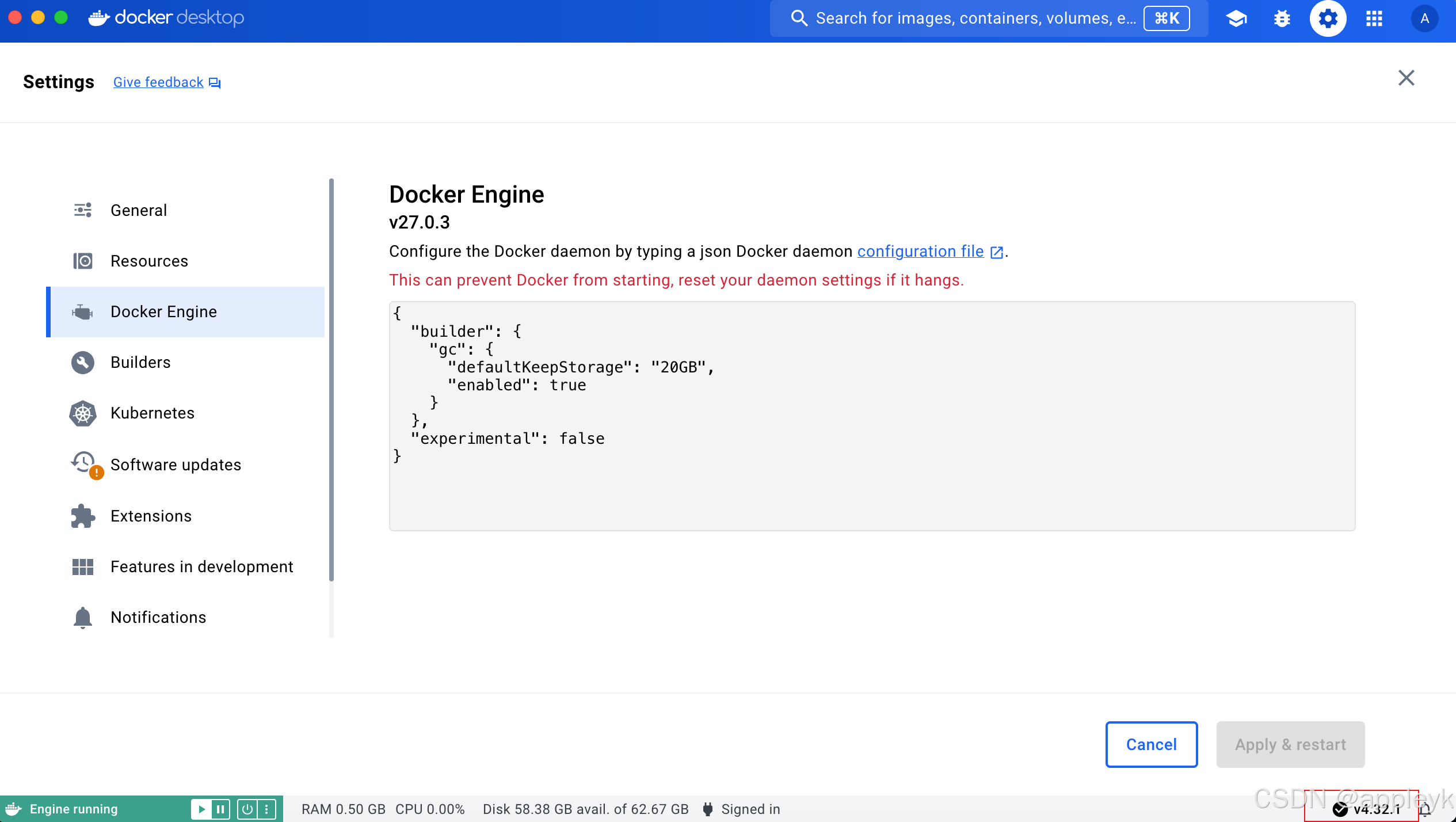 由于在部署dify前我升级了我的docker desktop(注意不要太高,太高的话自己的mac系统不一定能匹配上,地址:MacOS Docker Desktop历史版本列表),