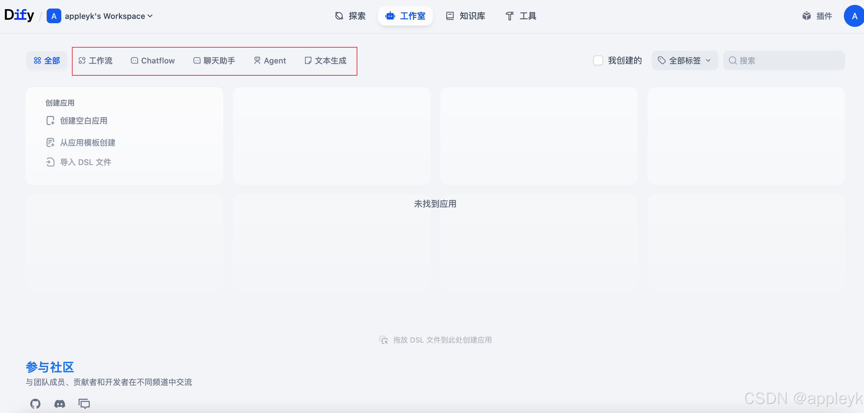 - 设置完成后,会跳转到工作室页面(团队·成员·资源共享),如果没用过coze和dify,一进来这个页面会有点懵。
