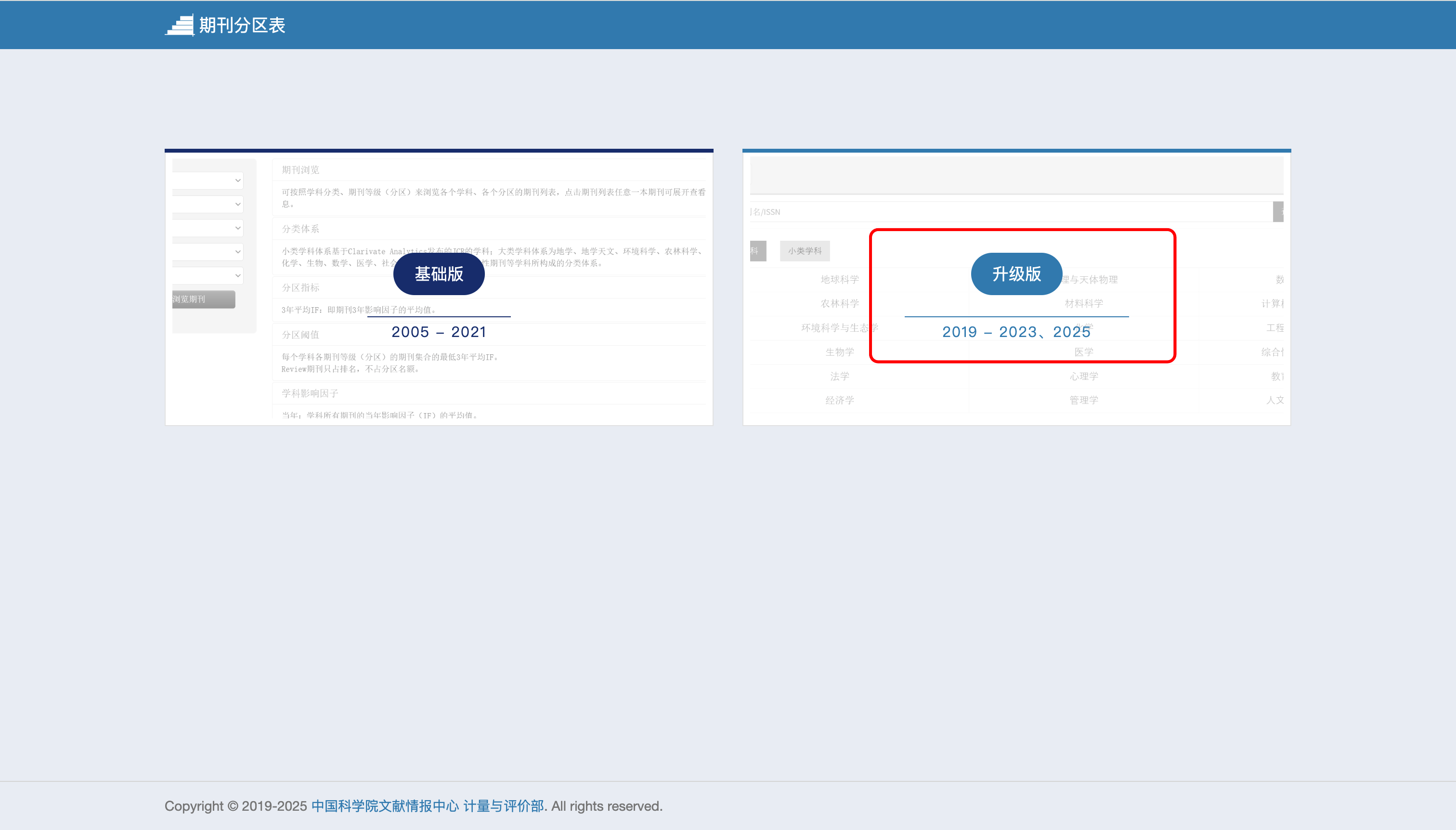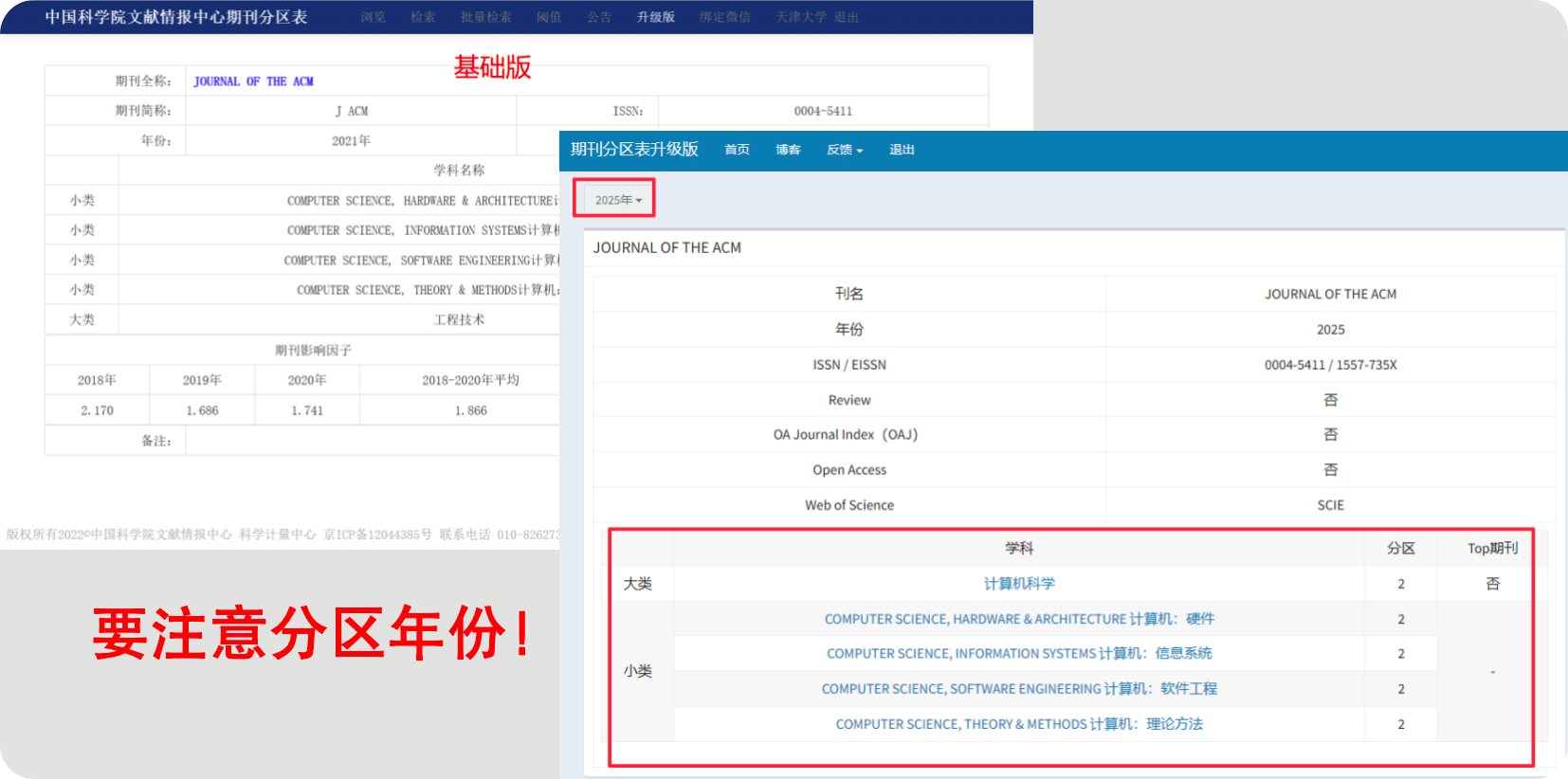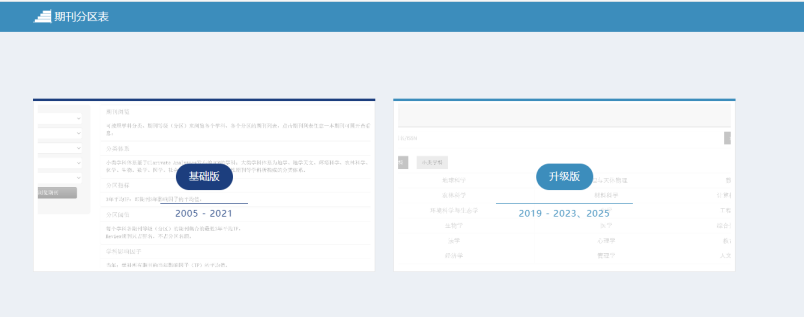 示例3:中科院JCR分区表基础版和升级版对比。