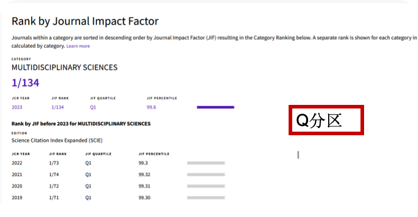Q分区,Journal ranking,根据当年影响因子从高到低排序,分成4个区。