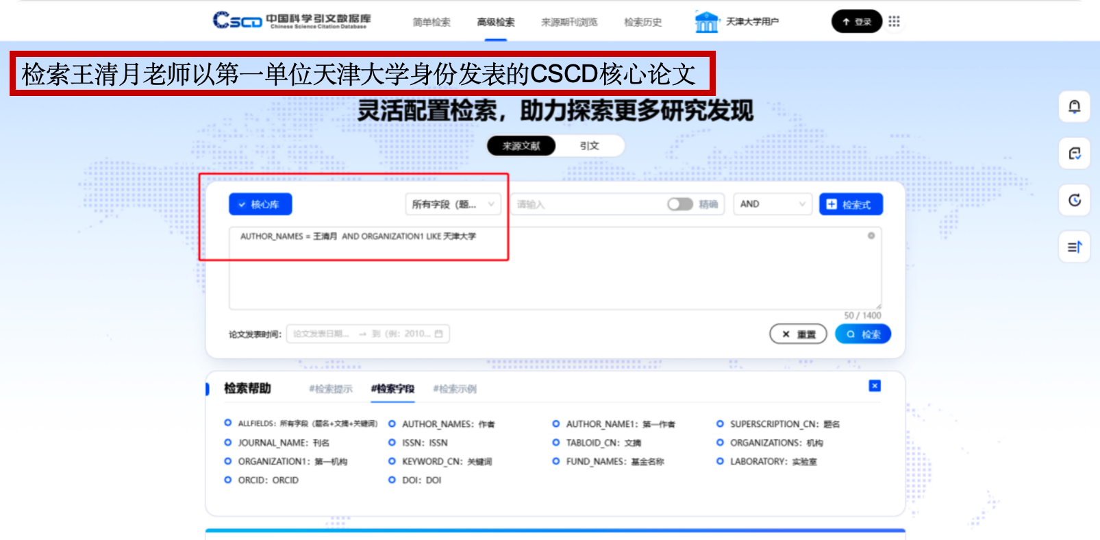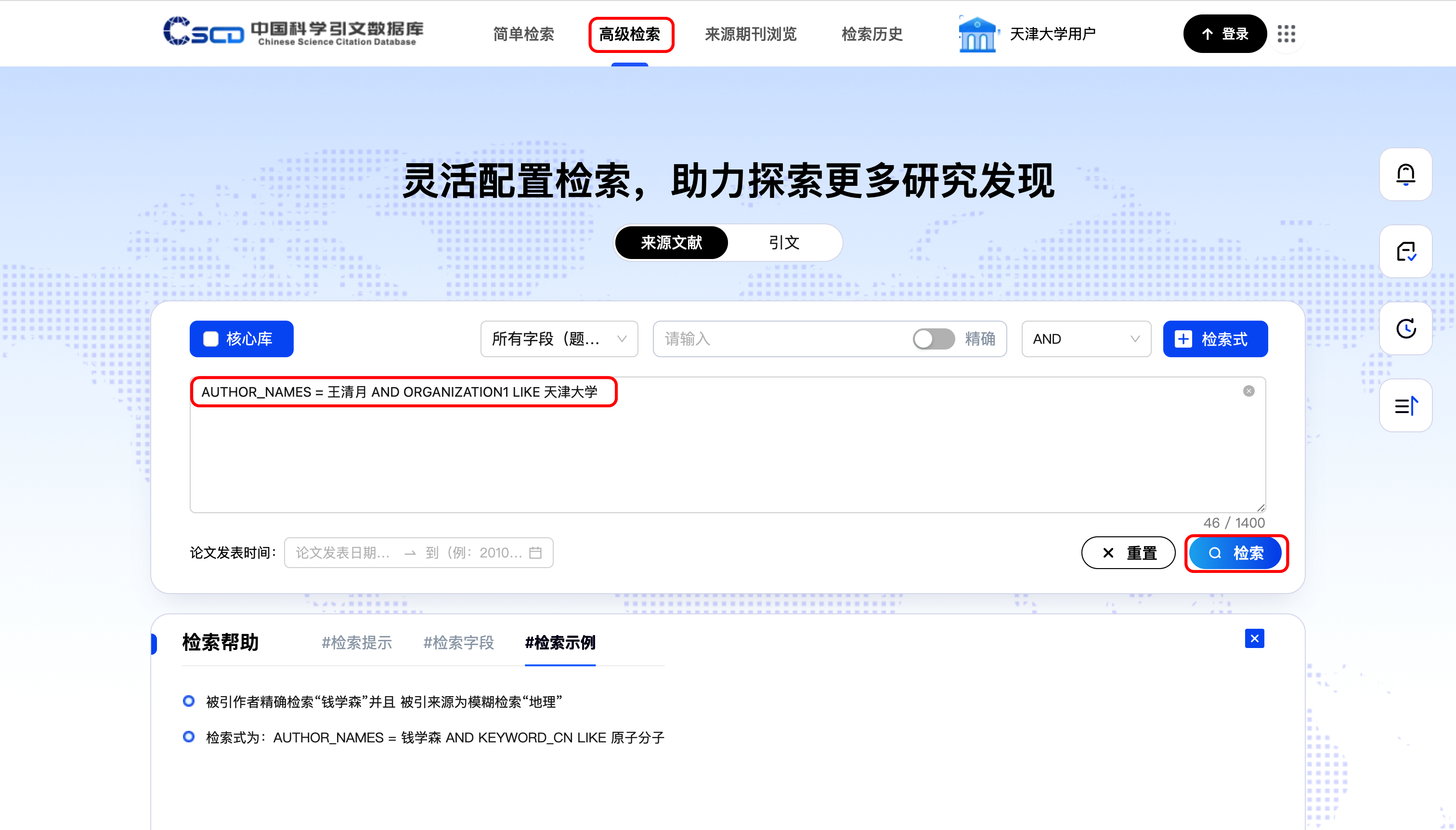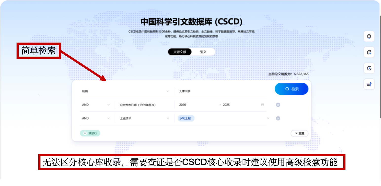 在CSCD检索网站选择高级检索,输入以下检索式进行检索。