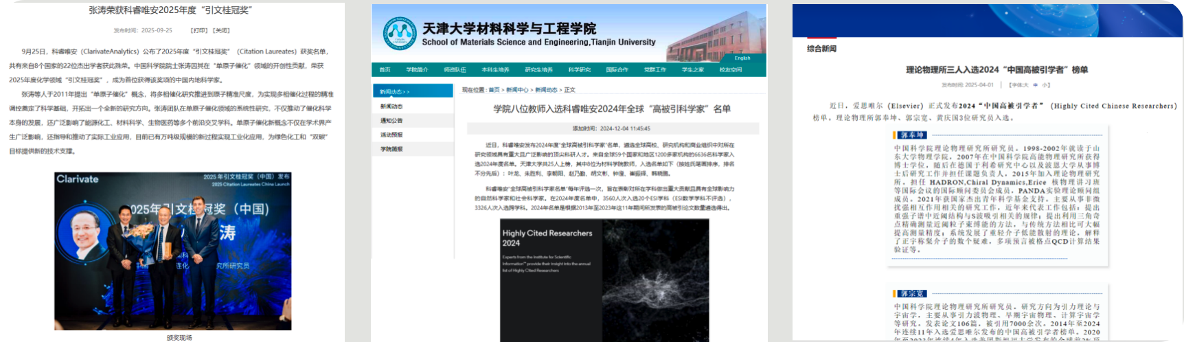 - 学者学术影响力评价:高被引科学家、引文桂冠奖、全球前2%顶尖科学家、中国高被引学者