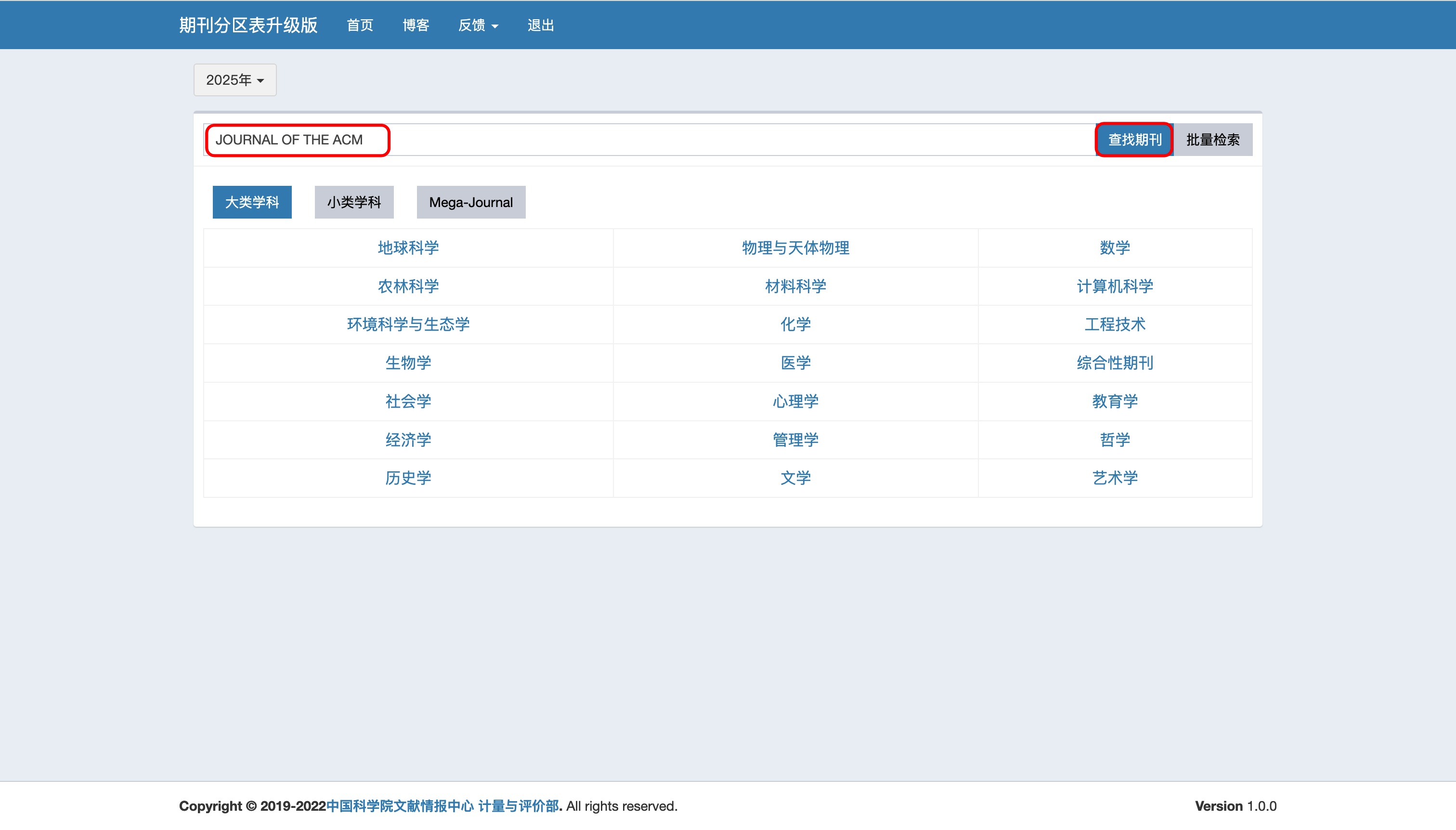1️⃣ 首先是中科院JCR期刊分区表(升级版)的分区检索和学科类别。
