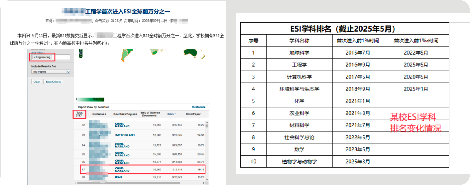可以看到,天津大学最新一期的ESI高被引论文数量为1489,及本期天大论文量最少的学科为"PLANT & ANIMAL SCIENCE",最多的学科为"ENGINEERING"(2025-12-21统计)。
