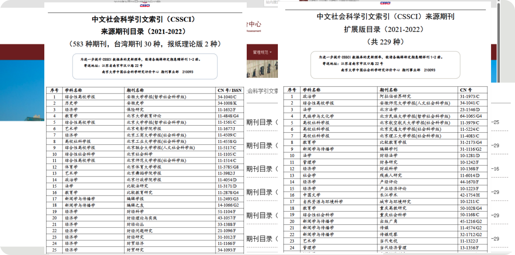- 2、南京大学"中文社会科学引文索引(CSSCI)来源期刊"