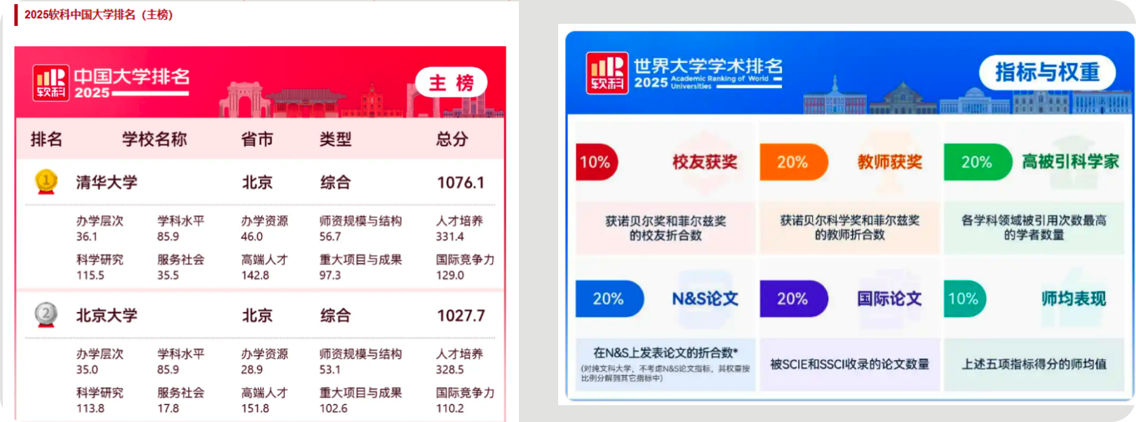 学术机构影响力评价包括:大学排行榜QS、THE、软科世界大学学术排名、特定学科(领域)学术产出分析、排名。