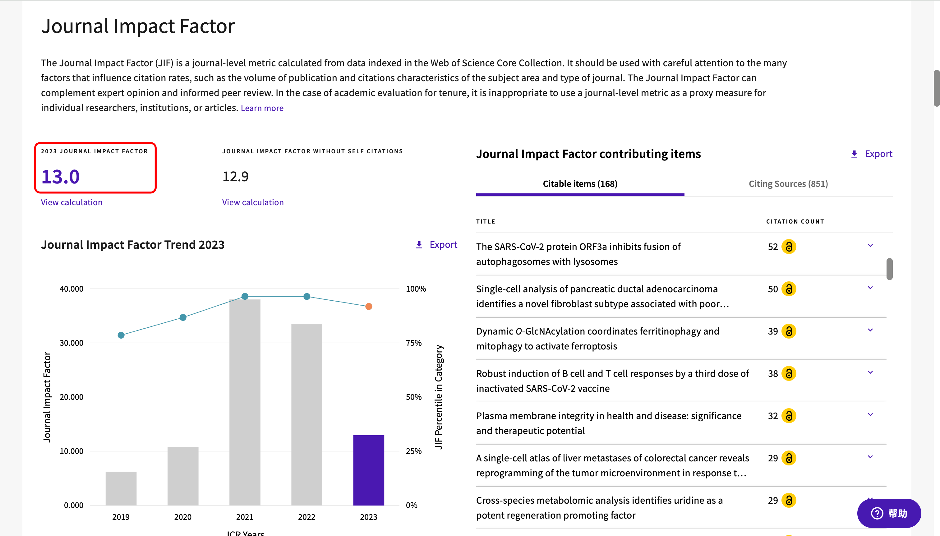 可以看到"Cell Discovery"这本刊物2023年的影响因子为13.0。