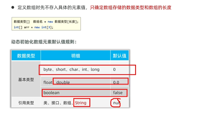 - 动态初始化数组,只确定数组类型和存储数据的容量