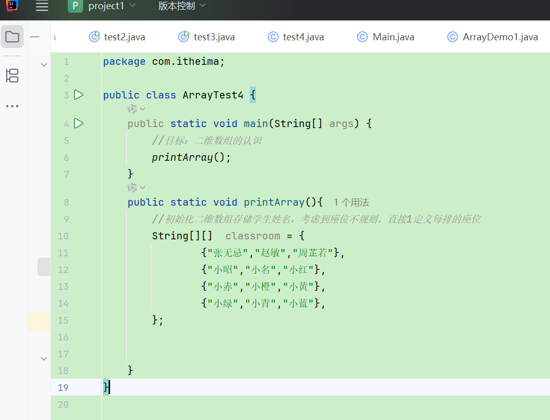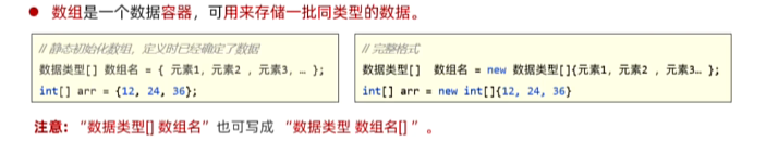 - 定义:数组是一个数据容器,用来存储一批同类型的数据