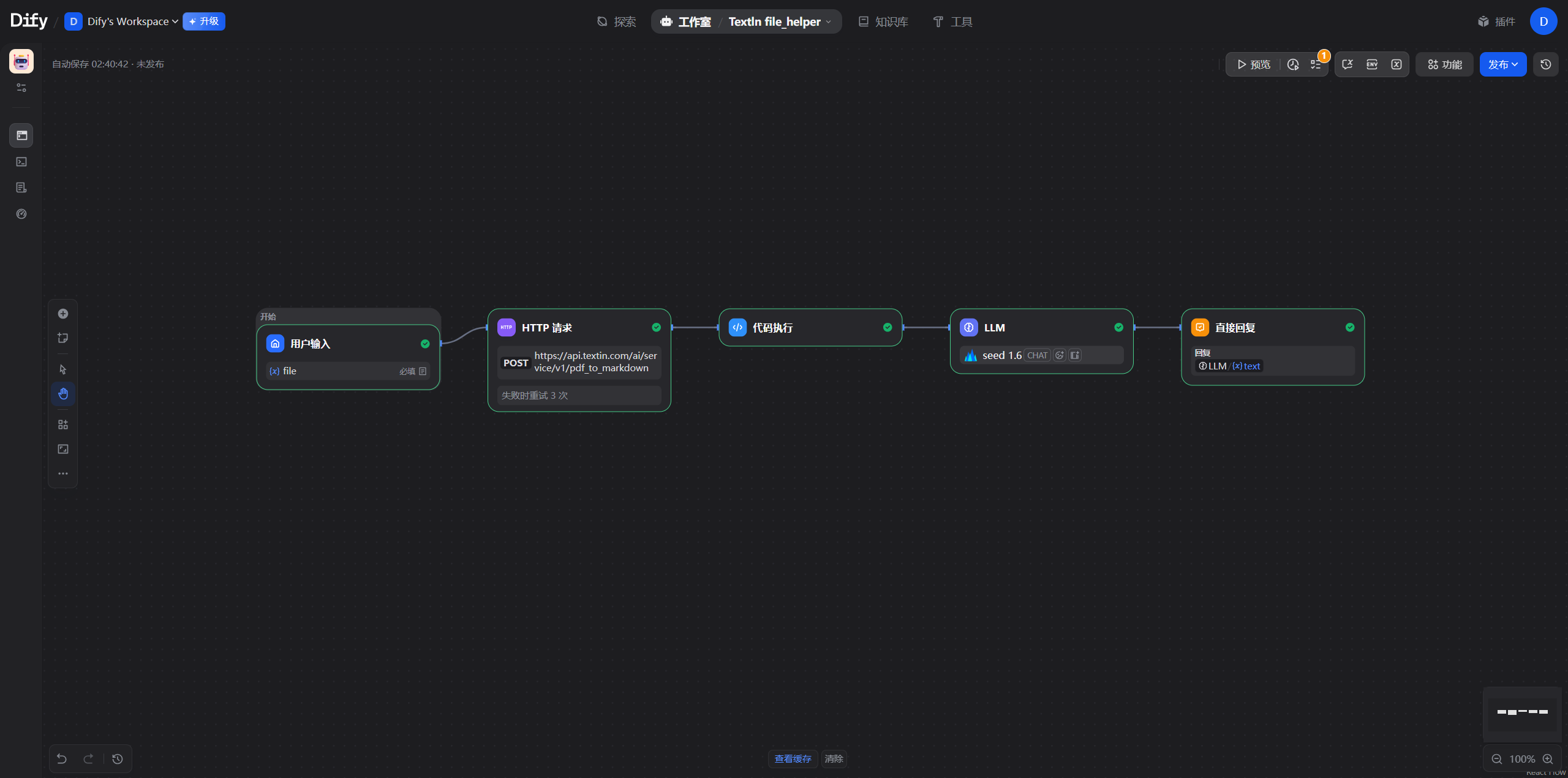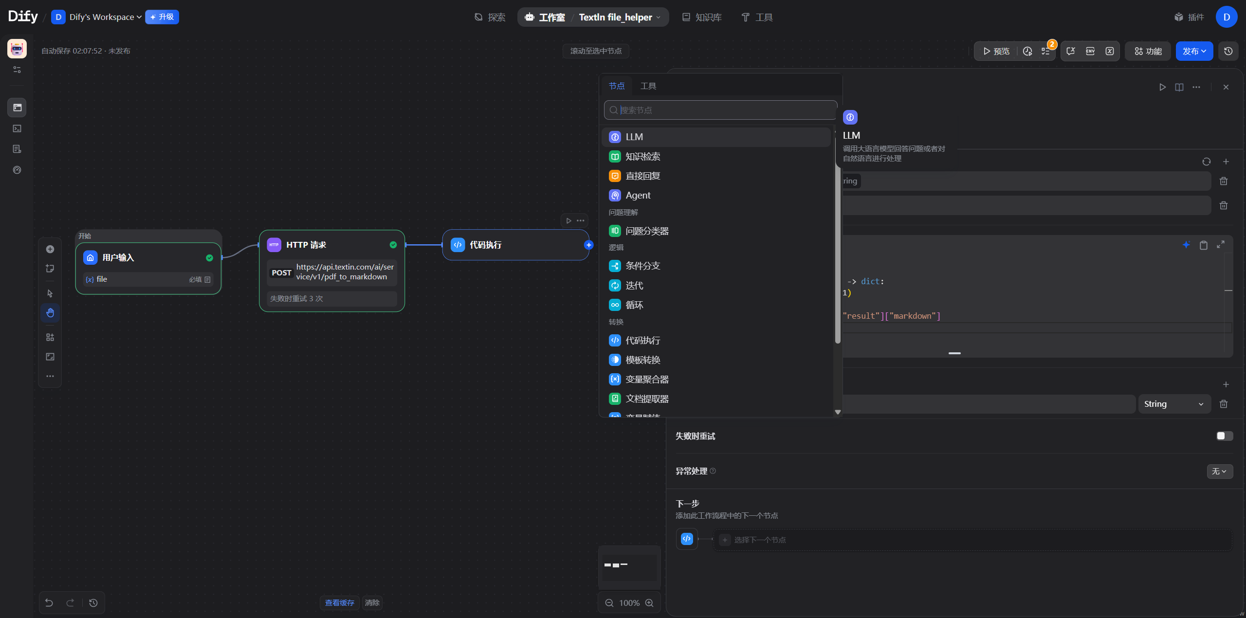 在文本智能领域,非结构化数据的精准解析与结构化转化是实现 AI 应用落地的核心环节。随着大语言模型技术的演进,如何高效处理复杂的 PDF 文档、图片报表并提取其中的深度价值,已成为开发者关注的重点。本文聚焦于基于合合信息旗下 TextIn "大模型加速器"与火山引擎豆包大模型的集成实践,详细展示在 Dify 平台中构建自动化文档处理工作流的技术路径。