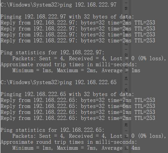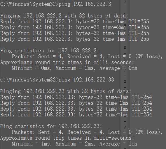 备注:完成实验后,记得删除这些路由。方法是:route delete 192.168.222.32