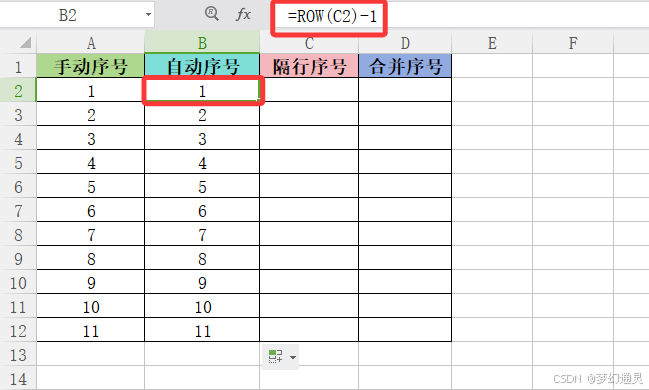 自动填充可使用【ROW】函数,从第二行填充,可在单元格中输入【=ROW()-1】,再往下拖动即可,实现效果如下所示。
