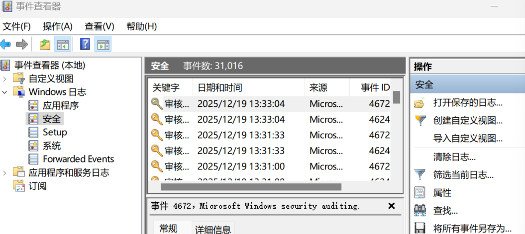 方法:打开事件查看器(win+R输入eventvwr.msc),分析用户登录日志