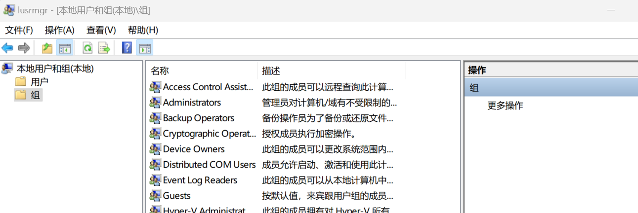 方法:打开 cmd 窗口,输入lusrmgr.msc命令,查看是否有新增可疑的账号,如有管理 员群组的(Administrators)里的新增账户如有请立即禁用或删除掉