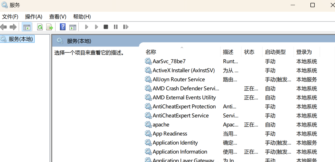 方法:win+R输入services.msc,注意服务状态和 启动类型,检查是否有异常服务