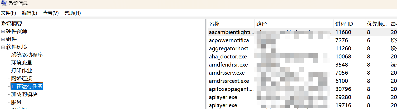 方法:1、(win+R输入msinfo32)依次点击"软件环境→正在运行任务"就 可以查看到进程的详细信 息