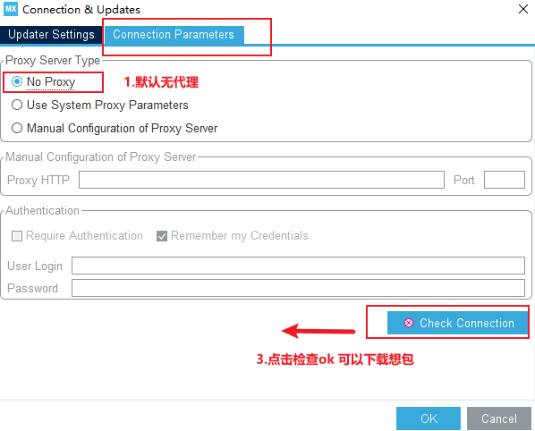 - 在 Settings 里的 Connection Parameters,点击 Check Connection。如果失败,可能需要配置代理。