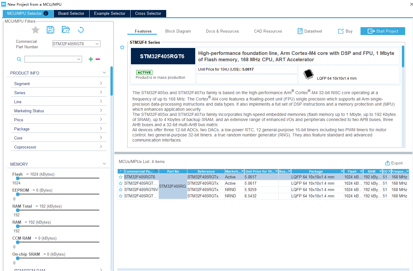 - 搜索你的芯片型号(如 STM32F405RGT6)。