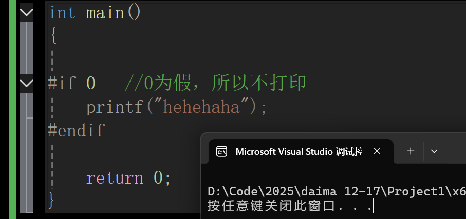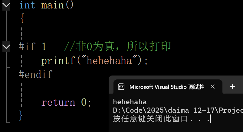 这个消除的范围是根据if 和endif 的位置来决定的,里面的都会被消除,为0则假,就消除,如果为真那就照常打印