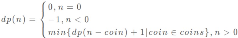 此问题是动态规划问题,因为其具有最优子结构。例如,当求amount = 11的最少硬币数时(原问题),若已知amount = 10的最少硬币数(子问题)且包含面值为1的硬币,则只需在amount = 10的结果上加1即可。并且,由于硬币数量之间是没有限制的,因此子问题之间是没有限制、相互独立的。为列出状态转移方程,还需确定以下条件: