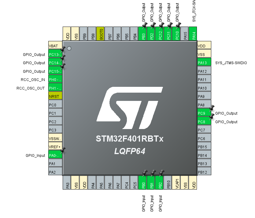 - 在STM32CubeMX软件中完成按键、LED灯、蜂鸣器的初始化配置(默认上电后LED灯全部关闭,蜂鸣器关闭);