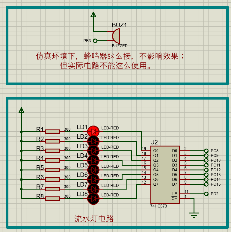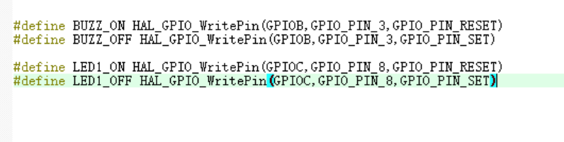 我们引入宏定义变量定义蜂鸣器(PB3)和第一个LED灯(PC8)